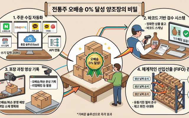 마케팅/판매팁/IT뉴스 마케팅/판매팁/IT뉴스 카테고리 전체마케팅판매팁IT뉴스 Total 21건 2 페이지 RSS 게시판 검색 11 전통주 스마트스토어 입점 방법, 처음부터 끝까지 전통주 스마트스토어 입점은 일반 상품과 달리 온라인 주류 판매의 합법성을 증명하는 **'전통주 자격 서류'**와 **'주류.. 작성자 최고관리자 작성일 04-11 10 전통주 제조장 AI 도입, 불량률 30% 줄인 실제 방법 제조장에 AI를 도입하여 실제 불량률(산패, 맛의 변질, 이물질 등)을 획기적으로 낮춘 구체적인 방법론은 다음과 같습니다... 작성자 최고관리자 작성일 04-11 9 막걸리 양조장에 IoT 적용하면 생기는 일 IoT 도입은 양조장의 '데이터 기반 품질 관리'와 '운영 자동화'를 실현하여 품질 상향 평준화와 인건비 절감을 가능케 합.. 작성자 최고관리자 작성일 04-24 8 오배송 0% 달성한 양조장의 입출고 관리 방법 전통주 택배 출고 오배송 0%를 달성한 양조장들은 무겁고 장기적인 맞춤형 WMS(창고관리시스템)를 자체 구축하기보다는, 오.. 작성자 최고관리자 작성일 04-24 7 막걸리 vs 청주 vs 약주 차이, 전통주 종류 완전정복 발효된 술덧(밑술)을 걸러내는 방식과 주세법상 누룩의 사용량에 따라 막걸리(탁주), 약주, 청주가 구분됩니다. 술덧을 섞어.. 작성자 최고관리자 작성일 04-24 6 오픈마켓 전통주 판매 플랫폼 비교 (스마트스토어 vs 쿠팡 vs 롯데ON) 오픈마켓 전통주 판매 플랫폼 비교 (스마트스토어 vs 쿠팡 vs 롯데ON)안녕하세요. [스마트 양조장 운영 가이드] 시리즈.. 작성자 최고관리자 작성일 04-19 5 전통주 창업 지원사업, 이것만 알면 합격합니다 최근 전통주 시장이 빠르게 성장하면서 자신만의 브랜드를 꿈꾸며 양조장 창업을 준비하시는 분들이 많아졌습니다. 하지만 막대한.. 작성자 최고관리자 작성일 04-19 4 전통주 제조장 디지털전환 성공 사례 TOP 5 전통주 제조장의 디지털 전환(DX)은 생산 공정 자동화, AI 기반 품질 관리, 그리고 이력 추적 시스템 도입을 중심으로 .. 작성자 최고관리자 작성일 04-18 3 전통주 유통기한 관리 실패하면 생기는 일 (선입선출) 전통주 제조장에서 선입선출(FIFO) 관리가 무너지면 단순 폐기 비용을 넘어 품질의 일관성이 흔들리고 도매상 등 주요 거래.. 작성자 최고관리자 작성일 04-18 2 전통주 상세페이지 제작, 매출 16배 올린 3가지 핵심 전통주 상세페이지의 핵심은 불신 해소, 스토리텔링 기반 큐레이션, 그리고 모바일 최적화입니다. 전통주는 일반 식품과 달리 .. 작성자 최고관리자 작성일 04-17 처음 1페이지 열린2페이지 3페이지 맨끝 검색 검색대상 제목내용제목+내용글쓴이글쓴이(코) 검색어 필수 검색 닫기