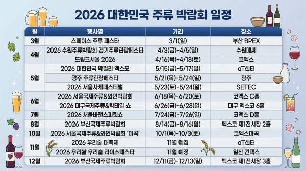 2026년 주류 박람회 전국일정 입니다. 공유 드립니다.
